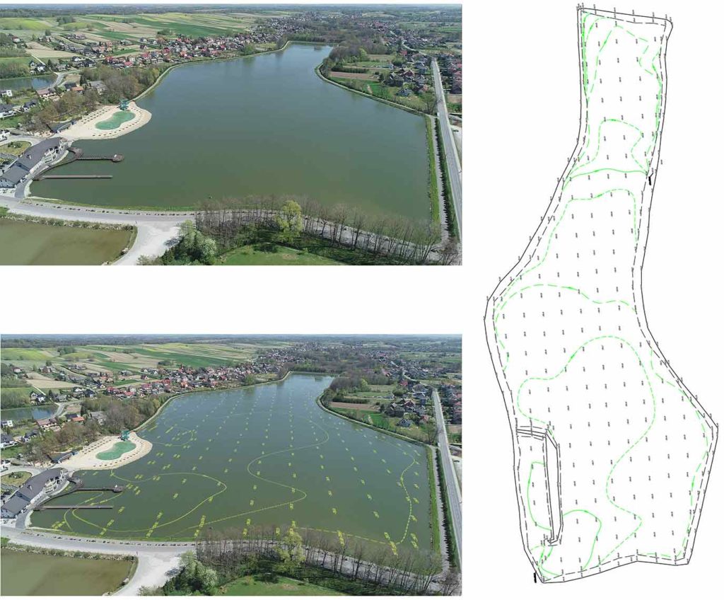 • Pomiar profilu dna, model DEM i 3D zbiornika wodnego  ośrodka turystyczno-wypoczynkowego MOLO_RESORT- 20 ha